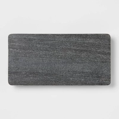 This Marble Serving Stand from Threshold™ will help provide a perfect base for appetizers, snacks, desserts and more. Crafted from marble in a rectangle shape with slightly curved sides, this black serving stand is set atop four gold-tone legs for a stunning look that easily integrates into any dining set up. This rectangle serving stand provides a convenient surface for your baked goods, appetizers and more to let you serve family or friends in elegant style.