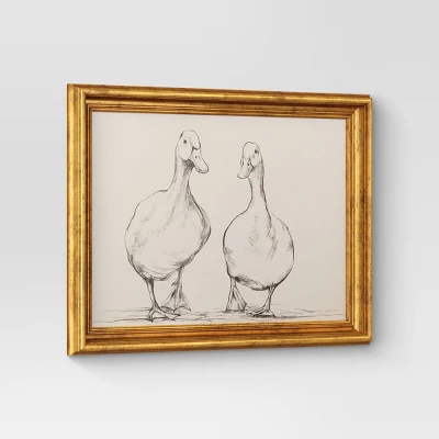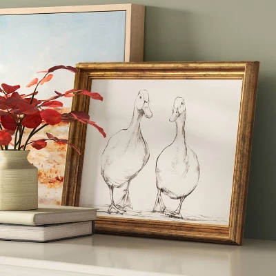 The 16″x 12″ Bird Sketch Canvas Board Framed Art Black from Threshold™ adds a delicate touch to your decor with its earthy tones and neutral hues. Measuring 16″x12″, this horizontal artwork is framed in a durable gold frame, creating a stylish contrast against the bird sketch. With its digital art medium, this piece showcases intricate details, making it an elegant and timeless addition to any room.