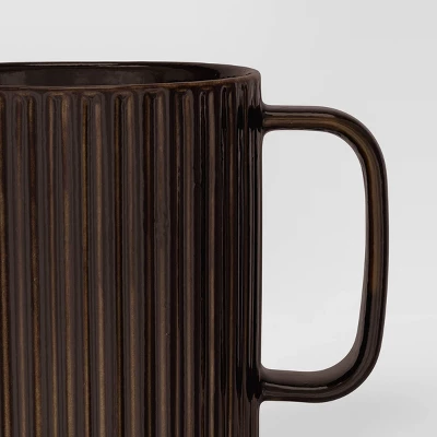 Upgrade your drinkware collection with this Moira Ceramic Mug from Threshold™. This stoneware coffee mug features a ribbed design in black with a glazed finish for elegant style, while a D-shaped handle makes it easy to hold in hand as you sip your favorite beverage. Suitable for serving both hot and cold beverages, it features a microwave- and dishwasher-safe construction for easy reheating and cleaning.