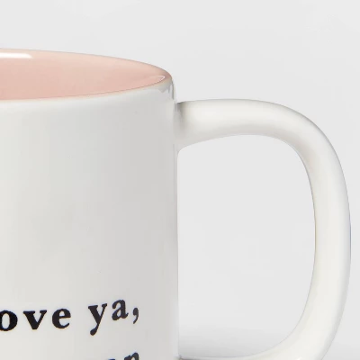 Enjoy each sip of your favorite drinks in style with this 16-Ounce Stoneware Love Ya Mean It Mug from Threshold™. Made from heavy duty stoneware for lasting use, this mug features “Love Ya Mean It” text on the side with color splash detailing on the inside that adds charm and flair to your favorite drinks. Both dishwasher- and microwave-safe, it’s extremely easy to care for and fill with any hot or cold beverage. Keep your kitchen cohesive and pair them with the coordinating dishware to create the perfect tablescape.