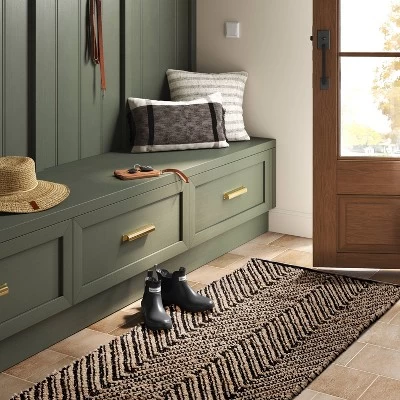 Bring textural flair to your indoor setting with this Handloom Chevron Runner Rug from Threshold™. Showcasing an allover chevron pattern in subtle hues, this woven runner rug adds charming flair to your floor space while blending easily with your existing decor. Plus, this jute runner rug features a flat-pile construction that makes it suitable for high-traffic areas like your living room or entryway.