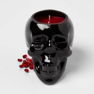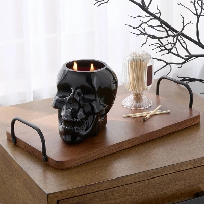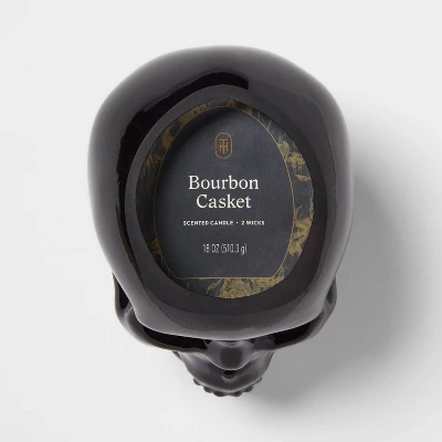 Make a statement with the 2 Wick 18oz Skull Shaped Filled Red Wax Candle Bourbon Casket from Threshold™. Housed in a striking ceramic skull-shaped container, this 18-ounce candle blends haunting design with indulgent scent, featuring rich toffee and bourbon notes for a warm aroma. With two wicks and a burn time of up to 50 hours, it offers an even, lasting glow. Crafted from a mix of palm and paraffin wax, it’s perfect for setting a moody ambiance or adding edge to your decor.