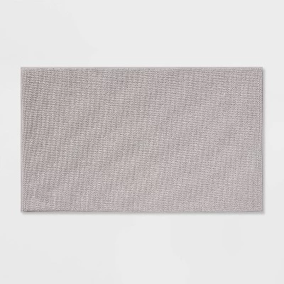 Step out of the shower and into luxury with this Fine Chenille Memory Foam Bath Rug from Threshold™. The memory foam lining brings you maximum comfort while you dry off and get ready to start your day, and it has a PVC backing to help keep it from slipping or sliding when you step on it. The knitted construction adds a fine finish to the whole. Toss it by the tub or place it in front of the vanity to enjoy its plush comfort as you go through your morning routine.