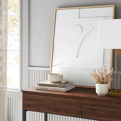 The 24″ x 30″ Dimensional II 3D Framed Wall Sculpture with Sand texture – Threshold™ seamlessly merges contemporary design with textured aesthetics. It features 3D abstract pattern, intricately textured with sand to add depth and visual intrigue. The monochromatic tone lends it a versatile appeal, making it easy to blend with various decor styles. Whether hung in a horizontal or vertical orientation, this 24″ x 30″ Dimensional II 3D Framed Wall Sculpture with Sand texture – Threshold™ is sure to become a mesmerizing focal point.