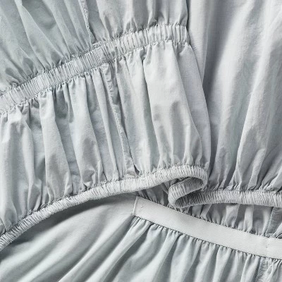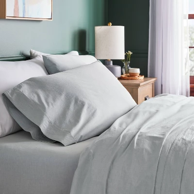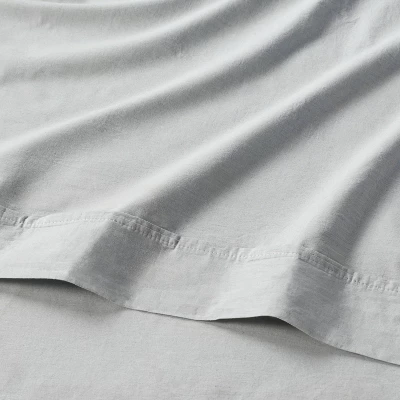 Refresh your bedroom with this 250-Thread-Count Organic Percale Sheet Set from Threshold™. Washed to create the look and feel of vintage sheets, this four-piece bedding set includes one fitted sheet, one flat sheet and two pillowcases. Each piece is made from 100% organic cotton with a durable percale weave for enduring comfort, and they can be tossed in the washing machine for quick and easy cleaning. Plus, the fitted sheet includes easy, bed-making placement labels and a patented technology that ensures a better fit on most mattresses.