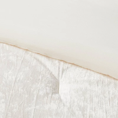 Add graceful textural shine to the top of your bed with this 3-Piece Luxe Distressed Crinkle Velvet Comforter and Sham Set from Threshold™. This velvet bedding set includes a soft-filled comforter and two matching pillow shams with six-inch envelope closures, all adorned with a distressed crinkle pattern on a solid color. This comforter and pillow sham set brings you year-round comfort, and the machine-washable construction makes cleaning a breeze.