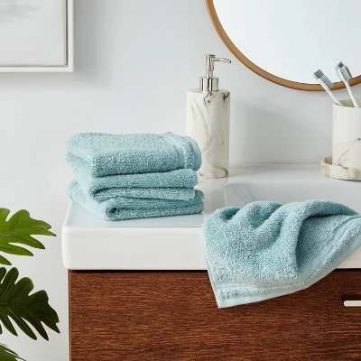 Refresh your bathroom essentials with this 4-Pack Total Fresh Antimicrobial Washcloth Set from Threshold™. This pack is a set of four solid-color square washcloths with hanging loops and measuring 13 inches x 13 inches. Made of heavyweight terry cotton, these antimicrobial washcloths are super soft and absorbent, making them perfect for gentle cleaning. Plus, they’re a breeze to clean thanks to their machine-washable construction.