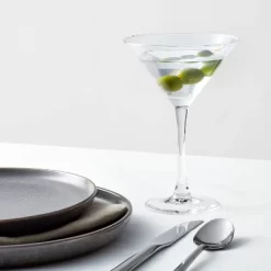 Serve up your favorite concoctions in a modern fashion with these Martini Glasses from Threshold™. Each glass in this set of four clear martini glasses features a slim, elegant stem and cone-shaped bowl that perfectly highlight your after-work or party pick-me-up. Thanks to the dishwasher-safe design, cleaning up after a party or dinner will be a breeze — cheers to that!