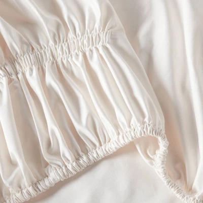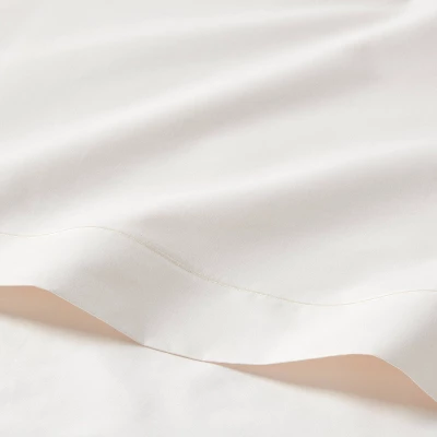 Bring a fresh look to your bedroom with this 4-Piece Hotel Collection Sheet Set from Threshold™. This pack includes a flat sheet, a fitted sheet, and two pillowcases of single barratta construction. Made from 100% cotton sateen fabric with 800 thread count, this set provides soft comfort for a cozy bedtime experience. Plus, this solid-color sheet set matches various decor themes for a coordinated look.