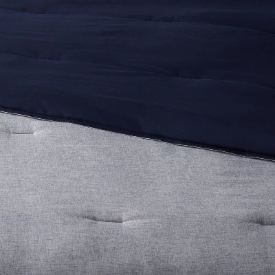Bring a stylish update to your bedspread with this 8-Piece Chambray Comforter and Sheet Set from Threshold™. This 8-piece bedding set includes a comforter finished with a tufted pattern for an elegant look, along with a fitted sheet, pillowcases, shams and a decorative pillow to give you loads of options for a cozy bedroom. A fitted sheet is also included, with all-around elastic to accommodate mattresses for comfortable use. This multi-piece comforter bedding set boasts a chambray fabric construction and is machine washable for easy cleaning.
