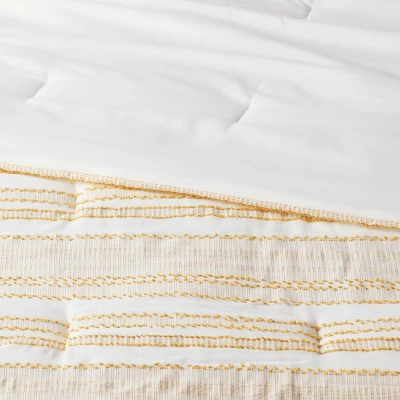 Turn your bedroom into a stylish, restful retreat with this 8-Piece Clipped Jacquard Striped Comforter and Sheet Set from Threshold™. This 8-piece bedding set includes a comforter finished with a clipped striped pattern for a modern look, along with a fitted sheet, pillowcases, shams and a decorative pillow to give you loads of options for a cozy bedroom. A fitted sheet is also included, with all-around elastic to accommodate mattresses for comfortable use. This multi-piece comforter bedding set boasts a lightweight jacquard fabric construction and is machine washable for easy cleaning.