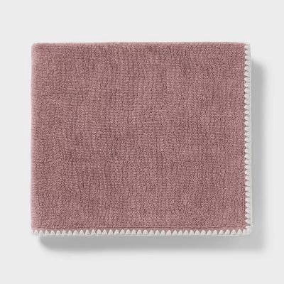 Add a touch of charm and elegance to your bath space with this Boho Border Stitch Towel from Threshold™. Made of 100% cotton, this bath towel features a boho stitch border for a unique look. Designed in a mauve hue, this towel comes with a loop for easy hanging from a hook or towel rack.