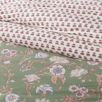 Update the look and comfort level of your bed with this Boho Reversible Printed Comforter & Sham Set from Threshold™. This two-piece bedding set includes a twin comforter and a matching pillow sham for cohesive appeal. Both pieces feature a floral pattern on the front green side and a boho-inspired print on the reverse so you can easily change the look when the mood strikes. The lightweight cotton-blend material with soft fill offers cozy and comfortable use. Plus, a six-inch envelope closure on the sham holds the pillow securely in place while still allowing for easy removal.
