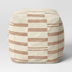 Palmette Wool Kilim Style Pouf With Removable Fill Cream With Rust Stripe – Threshold™