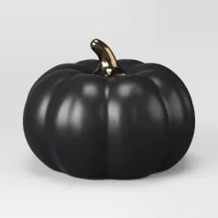 Set Of 3 Small Ceramic Halloween Pumpkins With Gold Stem – Threshold™