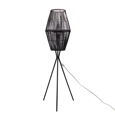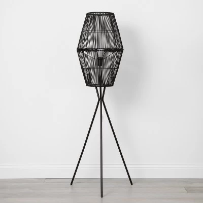 Let your artistic expression loose with this unique Rattan Diamond Tripod Floor Lamp from Threshold™. With three thin legs and a bold cage design, this black floor lamp stands just under five feet tall to easily fit in any room. The rocker switch design lets you have just the right amount of light for reading, working or relaxing before bed. Whether you purchase it with a bulb already included or would rather supply your own, you’ll love how the lamp lights up your living space.