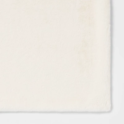 Cover yourself in the luxe softness of this Faux Rabbit Fur Throw Blanket from Threshold™. Featuring a soft faux rabbit fur construction, this throw blanket brings extra warmth to your leisurely pursuits, making it great for enveloping yourself on game night, late night readings or movie marathons. In a warm neutral hue, this decorative throw blanket adds a stunning finish to your space. Drape it over your favorite armchair or toss it on the back of your sofa to add texture to your decor while providing a cozy cover for yourself or your guests.
