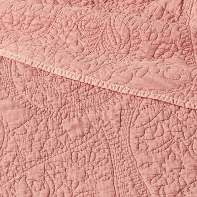 Refresh your bed and sleep in luxurious comfort night after night with this Garment Washed Paisley Stitch Quilt from Threshold™. This decorative paisley stitch quilt feels soft to the touch and adds an extra layer of warmth to your bed. Featuring a charming, garment-washed paisley stitch pattern in a solid hue, this quilt coordinates with matching shams and bedsheets of your choice to bring an inviting touch to your boudoir — giving you an array of decorating options.