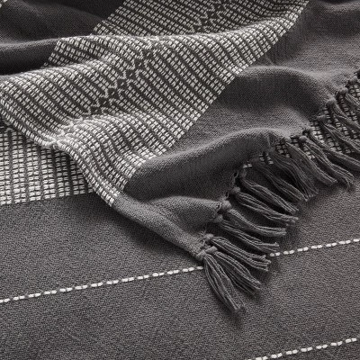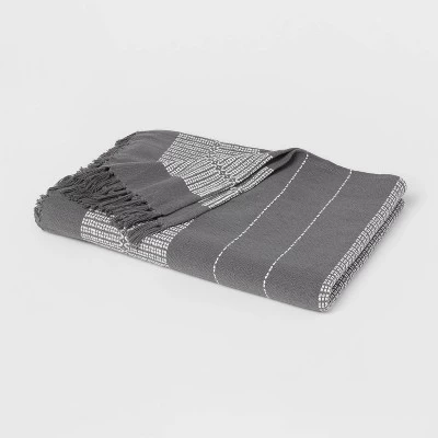 Add a cozy, welcoming touch to your space with this Global Fringed Oversized Throw Blanket from Threshold™. Made from 100% cotton, this midweight throw blanket features a woven white striped pattern on a contrasting solid-color background with matching fringe ends to bring a timeless, display-ready accent to your interior decor. It’s perfect for cozying up on your fave couch or sofa with a cup of coffee on cool summer evenings or crisp fall mornings, and best of all, this oversized blanket is machine washable for easy cleaning.