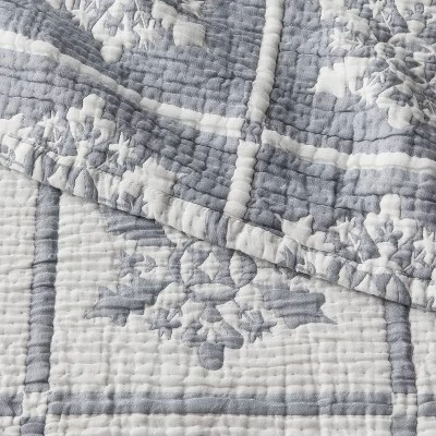 Spread cozy seasonal cheer throughout your bedroom with this Holiday Matelassé Quilt from Threshold™. This midweight jacquard quilt is made from 100% cotton with 100% polyester filling to provide year-round comfort. It showcases a holiday-inspired matelassé pattern that adds a festive touch to the top of the bed, and the machine-washable construction allows for hassle-free cleaning.