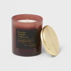 8oz Lidded Glass Jar Black Honey Vanilla Candle – Threshold™: Soy & Coconut Wax, 30hr Burn Time