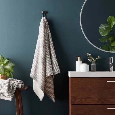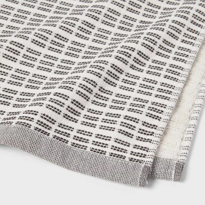 Bring functional style and luxury to your everyday bath routine with this Modern Dash Towel from Threshold™. This white bath towel features an allover dotted dash pattern in black for a modern look that easily blends with your bathroom decor. Made from terry cotton fabric, this bath towel feels soft against your skin and is highly absorbent to let you dry off in no time. Plus, this towel includes a top loop for convenient hanging from any hook in your bathroom.