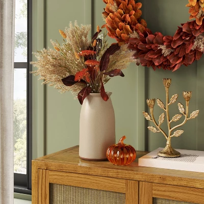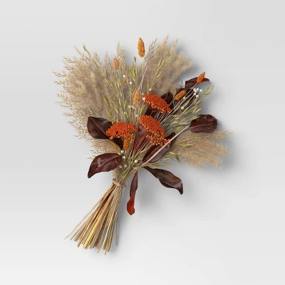 Bring depth and personality to any space in your home with this Preserved Fall Bundle from Threshold™. This fall bundle of preserved grasses, leaves and flowers brings a lively vibe to your home decor, and it comes wrapped in brown paper for an elegant touch. Display it on a vase alone or with other real or faux florals for a lovely table centerpiece.