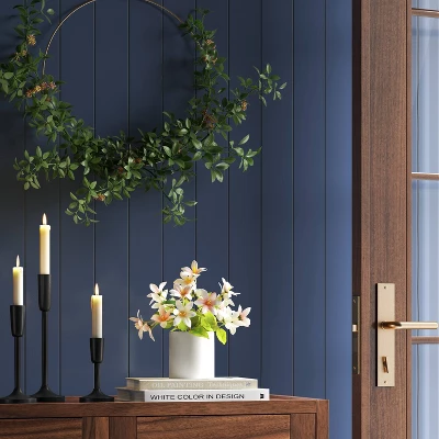 Add a warm glow to your interiors with this Set of 3 Aluminum Taper Candleholders from Threshold™. Made of black-finished metal, this set of candleholders includes three different-sized taper candleholders that can be displayed on the center table, mantle top or on any countertop to bring radiant style to your home. The trio of freestanding candleholders, each with a single holder at the top and a slender pole body with a rounded base, looks best when displayed together for a dramatic flicker effect.