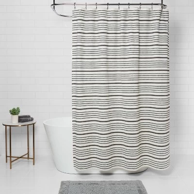 Update your bath space with the Multi-Stripe Shower Curtain from Threshold™. The versatile shower curtain features a black and white striped pattern that creates a classic look while making it easy to match with other decor styles. The cotton shower curtain helps prevent water from spilling onto your floors while showering, and it’s finished with a buttonhole top that allows for easy installation— all you need is a set of curtain hooks or rings. Coordinate with matching decorative pieces or incorporate pops of color for a vibrant theme.