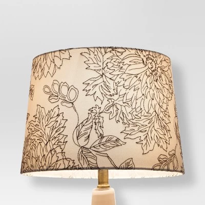 - Linen lampshade features allover floral design