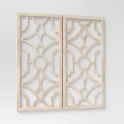 Set Of 2 Wood Lattice Wall Hanging Brown – Threshold™