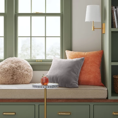 This Gray Washed Cotton Velvet Square Throw Pillow from Threshold™ brings elegant style to your living space. Featuring a soft and smooth, 100% cotton velvet shell with soft filling, this square throw pillow adds comfort and style to any chair, sofa or bed it’s tossed on. Best of all, it’s designed with a hidden zip closure for easily removing the pillow cover. Designed in a gray hue with a washed finish, it’s sure to complement a variety of decor styles.
