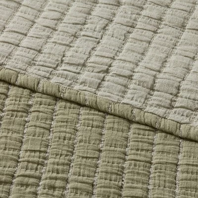 - Yarn-dye crinkle grid quilt
